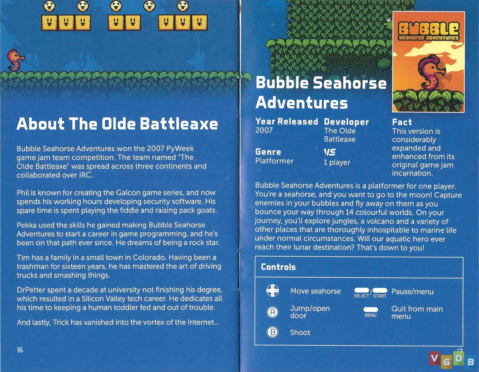- Bubble Seahorse Adventures - jogo de aventura 2D em plataforma. Além desta coletânea, o game também foi lançado para dispositivos móveis;