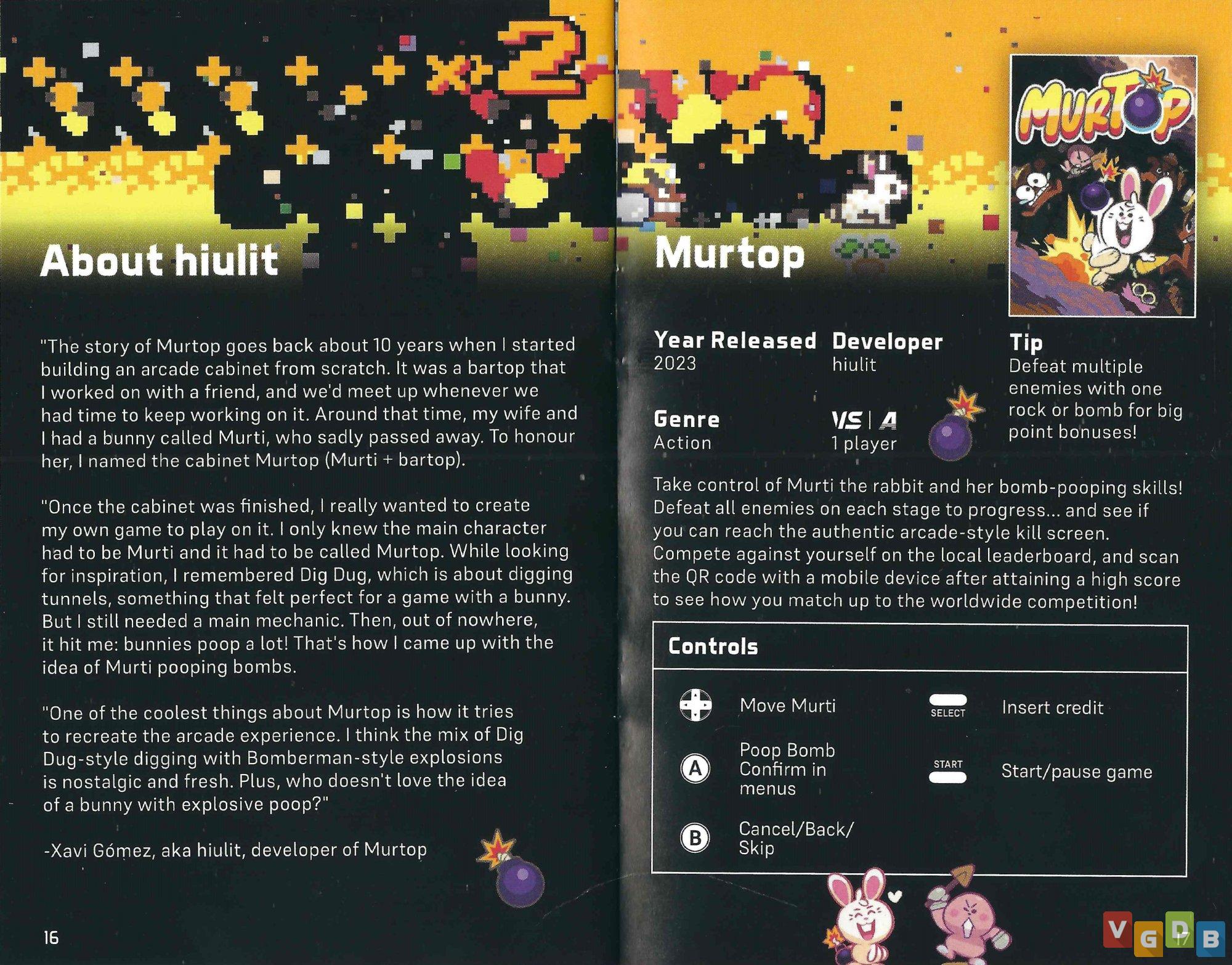- Murtop - jogo de ação 2D estilo arcade, desenvolvido pela hiulit, em versão nativa para Evercade. Além desta coletânea, o game também foi lançado para Switch e nos microcomputadores Linux, Macintosh e PC.