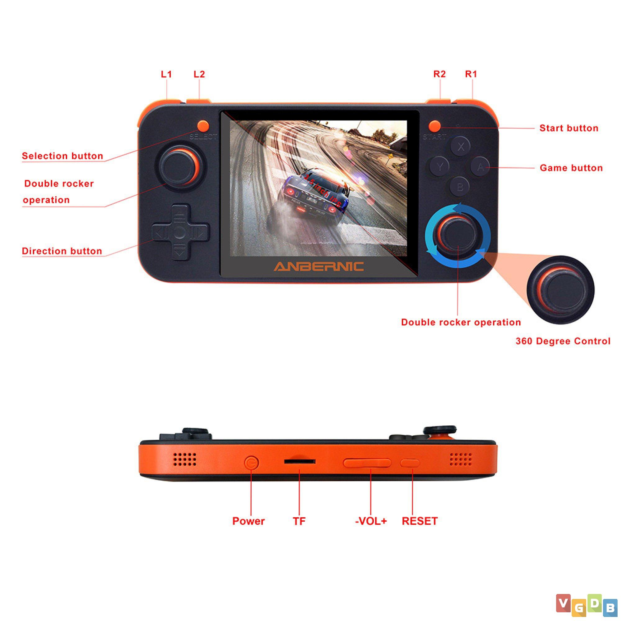Console desenvolvido e lançado pela Anbernic, baseado em Linux feito para rodar consoles clássicos através de emulação. O sistema roda praticamente todos os consoles do primeiro PlayStation para os mais antigos.