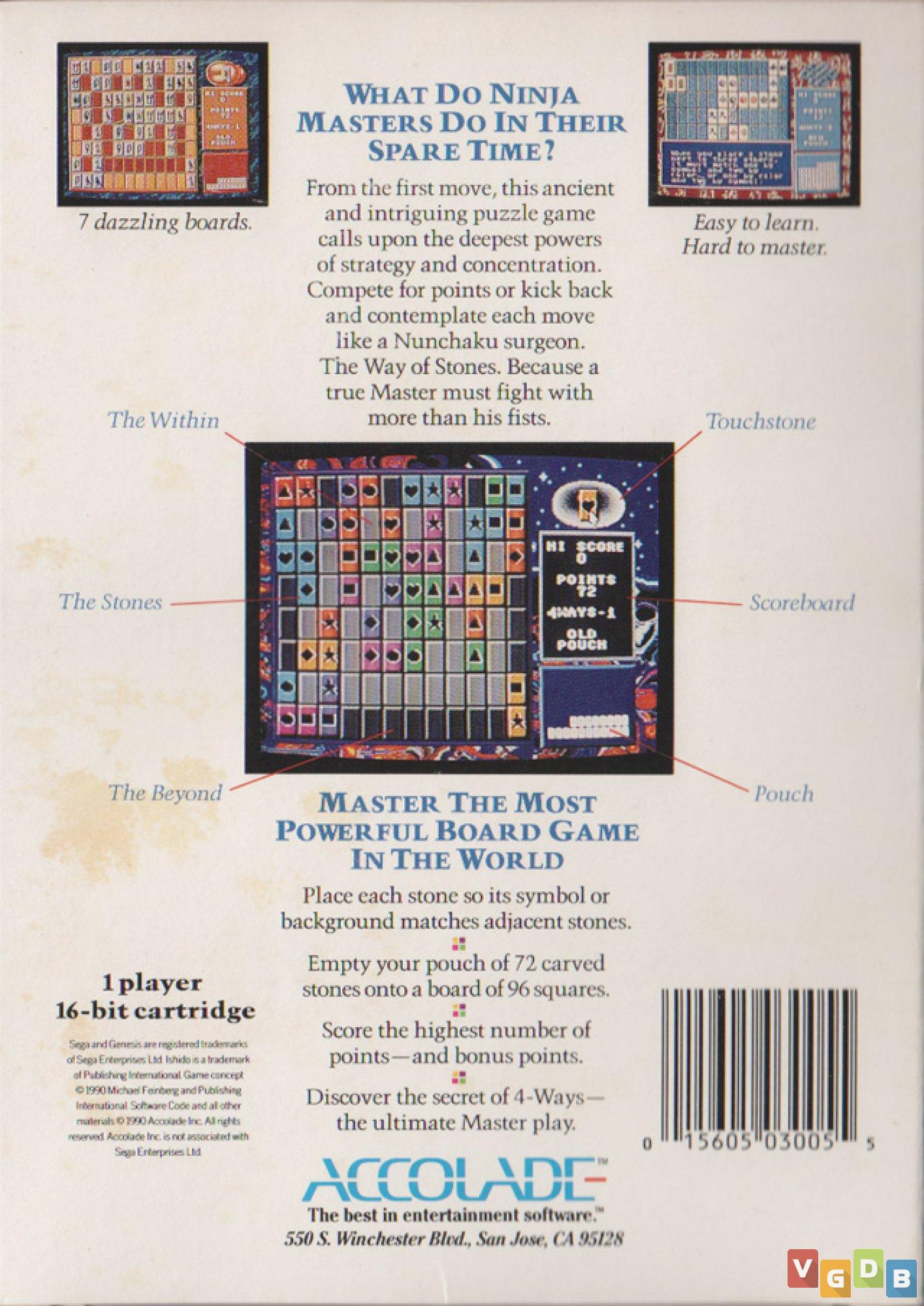 Ishido é um dos poucos jogos lançados comercialmente para o Mega Drive que funcionam apenas nos primeiros modelos do console, em razão da incompatibilidade com o TMSS - TradeMark Security System do console.