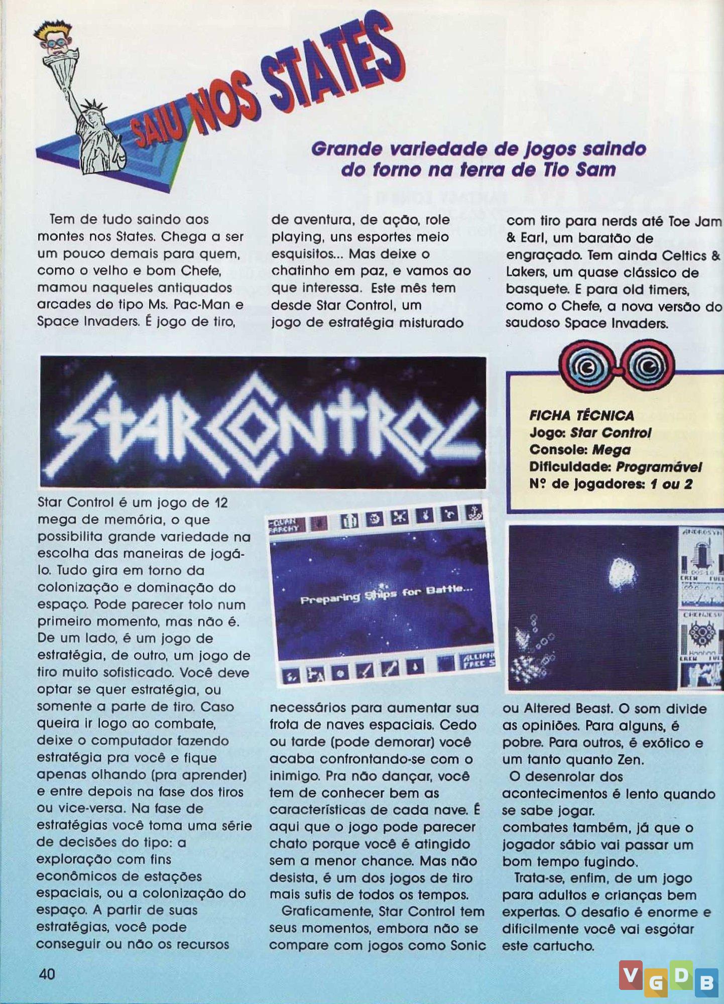 Jogo de estratégia espacial 2D, desenvolvido pela Toys for Bob e Accolade, publicado pela Ballistic. Além do Mega Drive, o game também foi lançado nos microcomputadores Amiga, Amstrad CPC, Commodore 64, PC, ZX Spectrum e nas coletâneas Max Pak (PC) e Star Control Collection (PC).