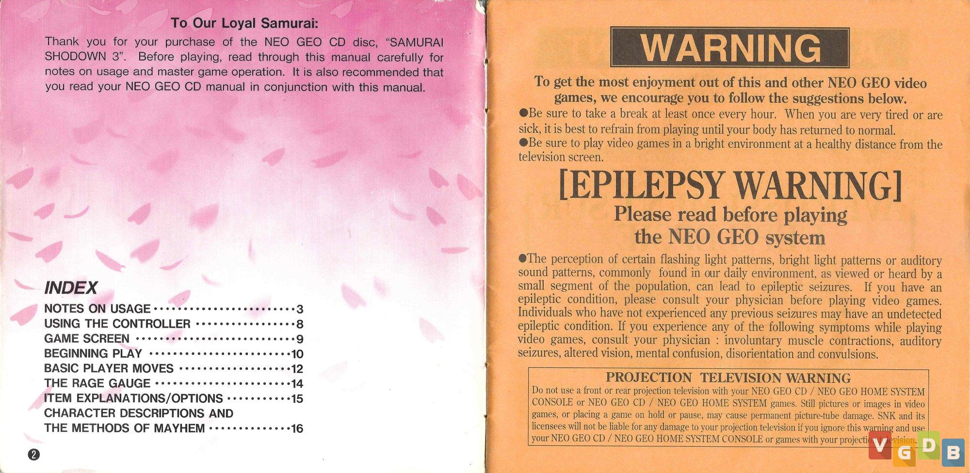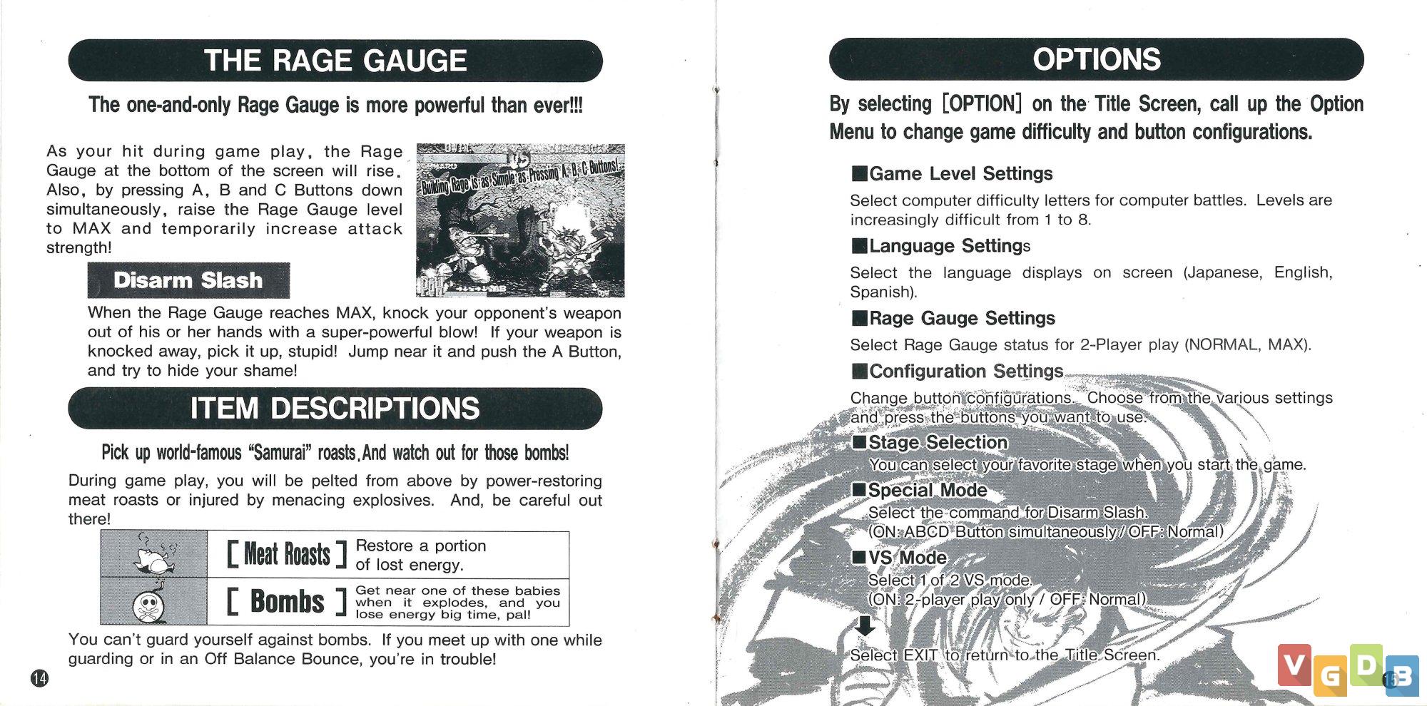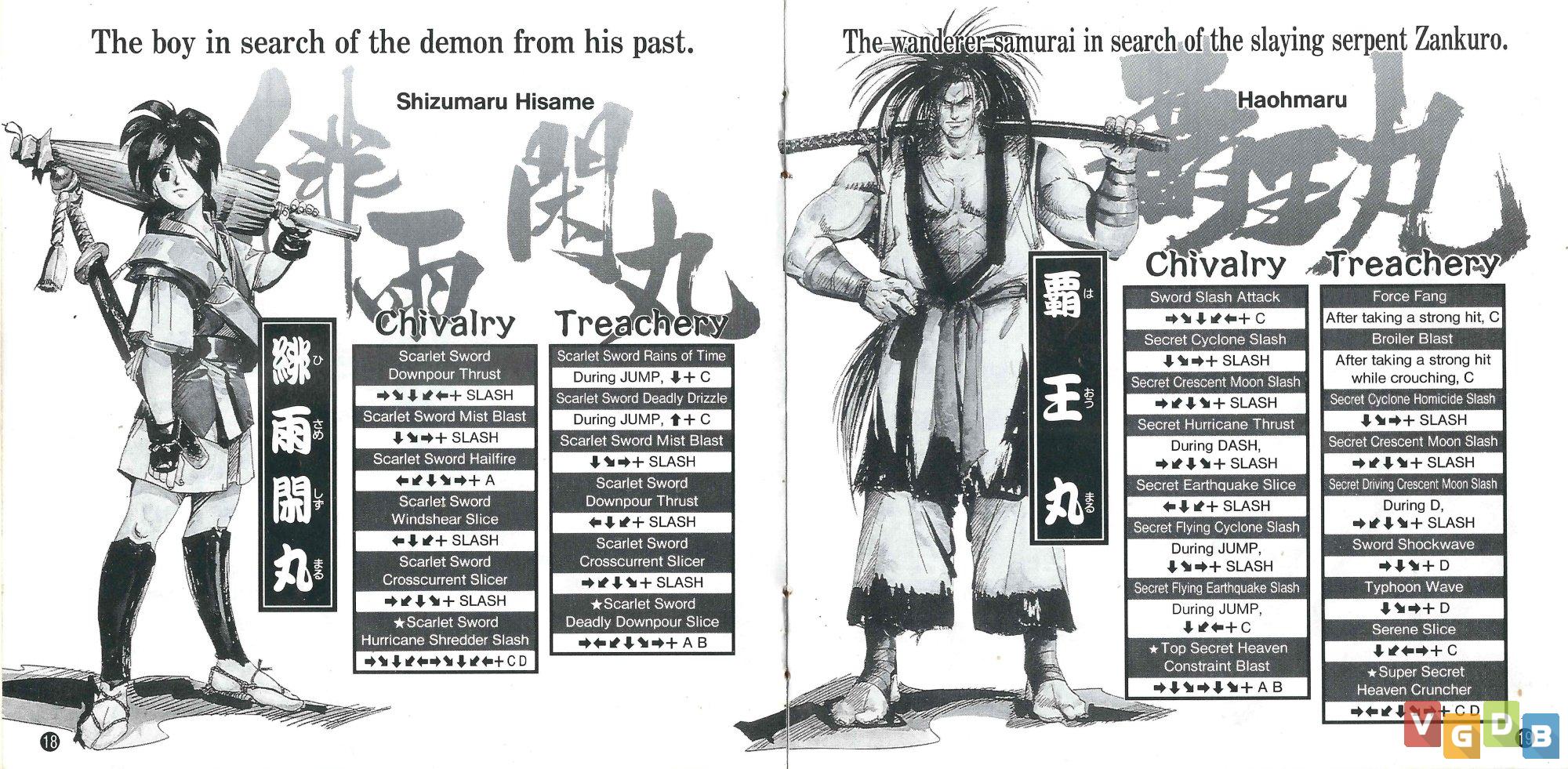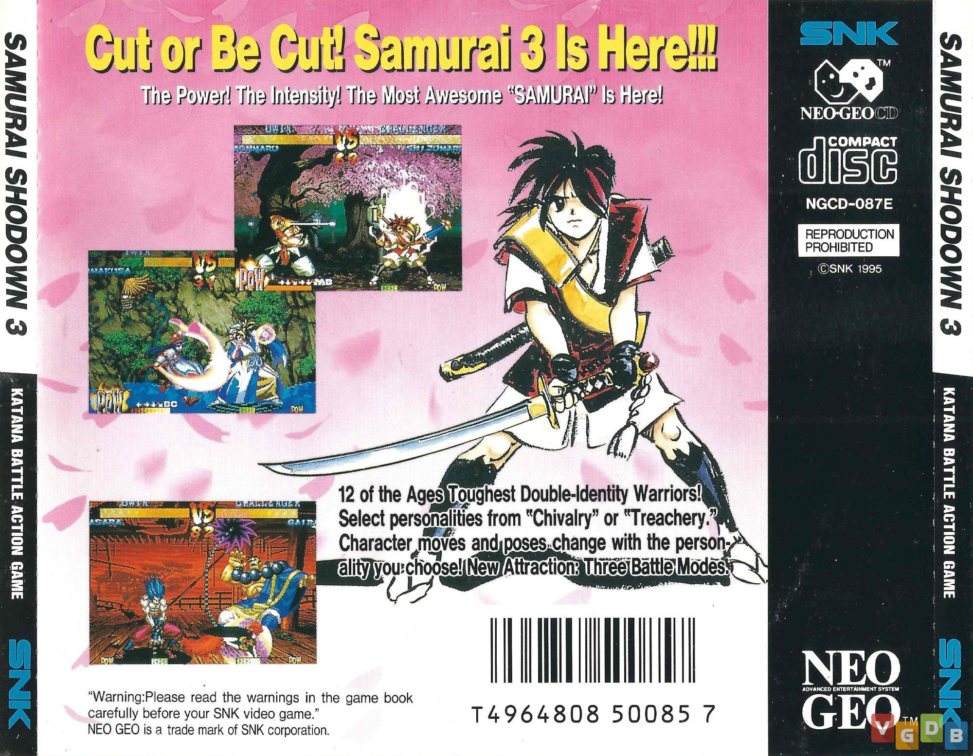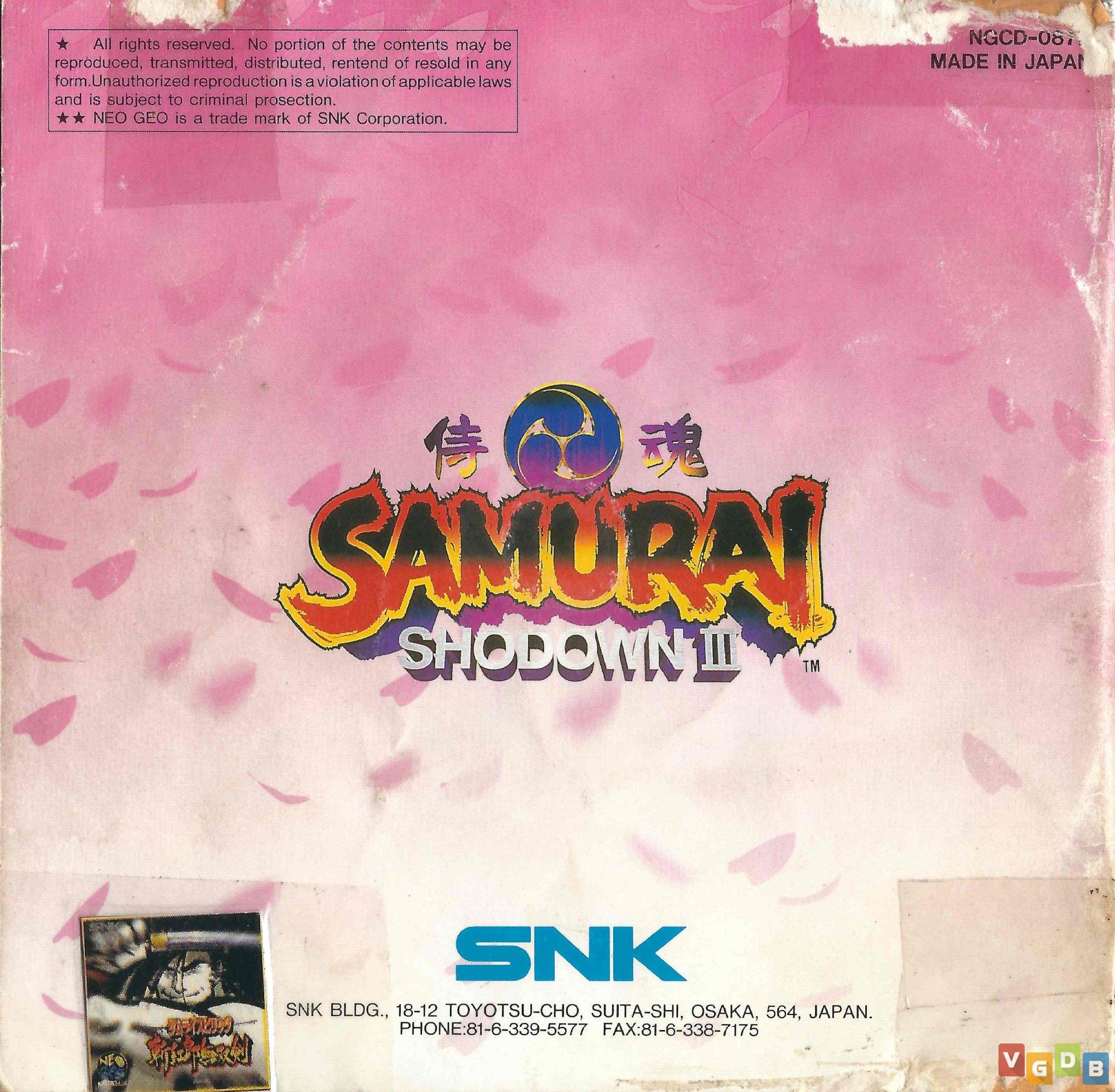 Jogo de luta 2D estilo versus, desenvolvido e publicado pela SNK. Além do Neo Geo CD, o game também foi lançado para Arcade, Game Boy, Neo Geo AES, PlayStation, PlayStation 3, PlayStation 4, PSP, PS Vita, Saturn, Switch, Wii e Xbox One, bem como nas coletâneas Samurai Shodown Anthology (PlayStation 2 / PSP / PS Vita / Wii), NeoGeo Online Collection Complete Box Joukan (PlayStation 2), Samurai Shodown NeoGeo Collection (PlayStation 4 / Switch / Xbox One / PC), NeoGeo X Mega Pack Volume 1 (Neo Geo X) e NeoGeo X Classics: Volume 2 (Neo Geo X), além de estar na memória do console Neo Geo Mini.
