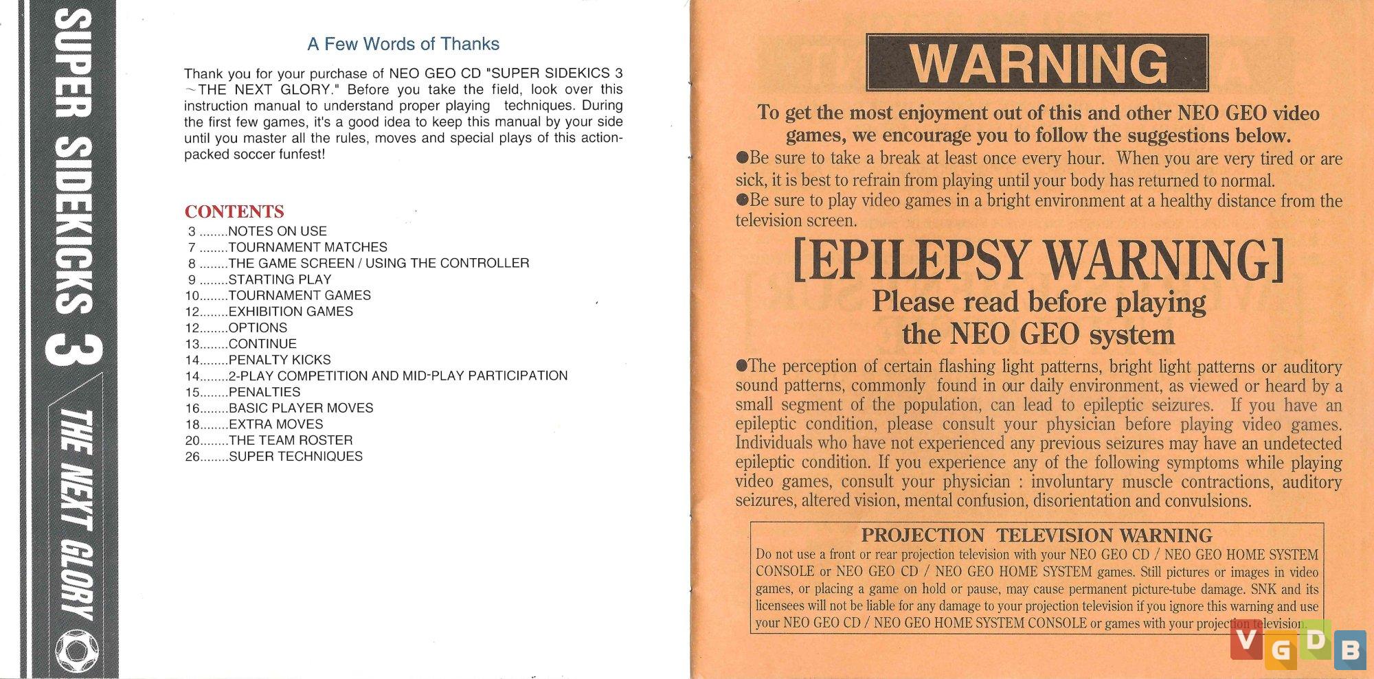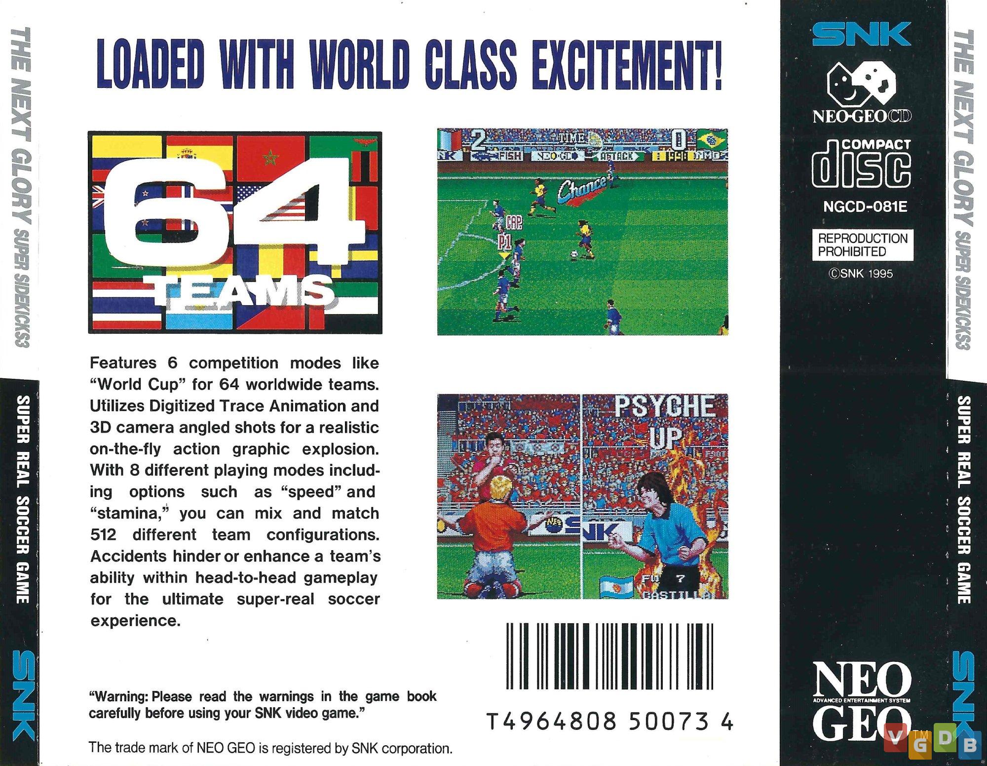 Jogo de esporte 2D (futebol) estilo arcade, desenvolvido e publicado pela SNK. Além do Neo Geo CD, o game também foi lançado para Arcade, Neo Geo AES, PlayStation 4, Switch e Xbox One, bem como nas coletâneas SNK Arcade Classics Vol. 1 (PlayStation 2 / PSP / Wii) e Neo Geo X Classics: Volume 2 (Neo Geo X), além de um demo na coletânea NeoGeo CD Special (Neo Geo CD).
