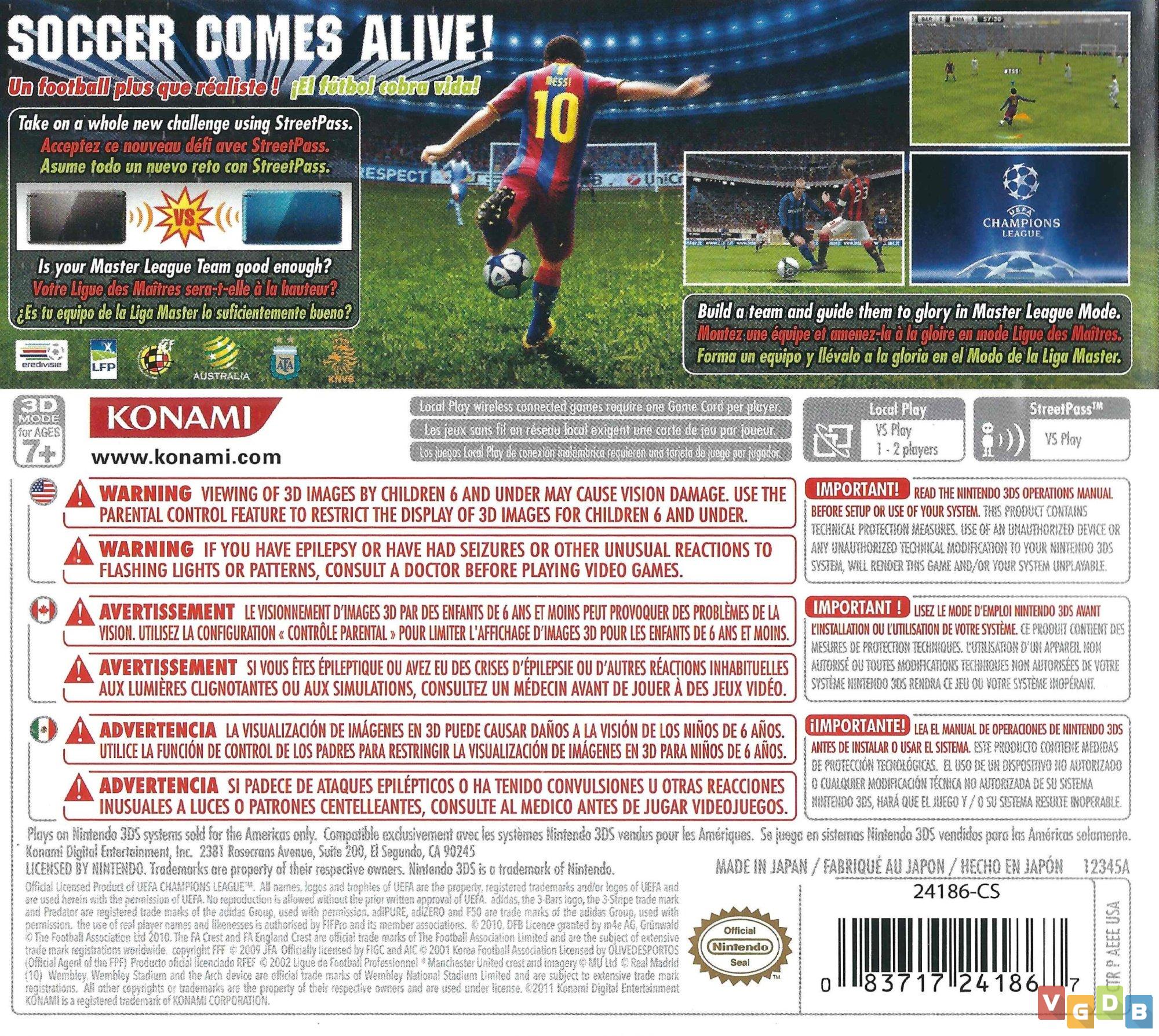 Jogo de esporte 3D (futebol), estilo simulação, desenvolvido e publicado pela Konami. Além do 3DS, o game também foi lançado para , PlayStation 2, PlayStation 3, PSP, Wii, Xbox 360, dispositivos móveis e PC.