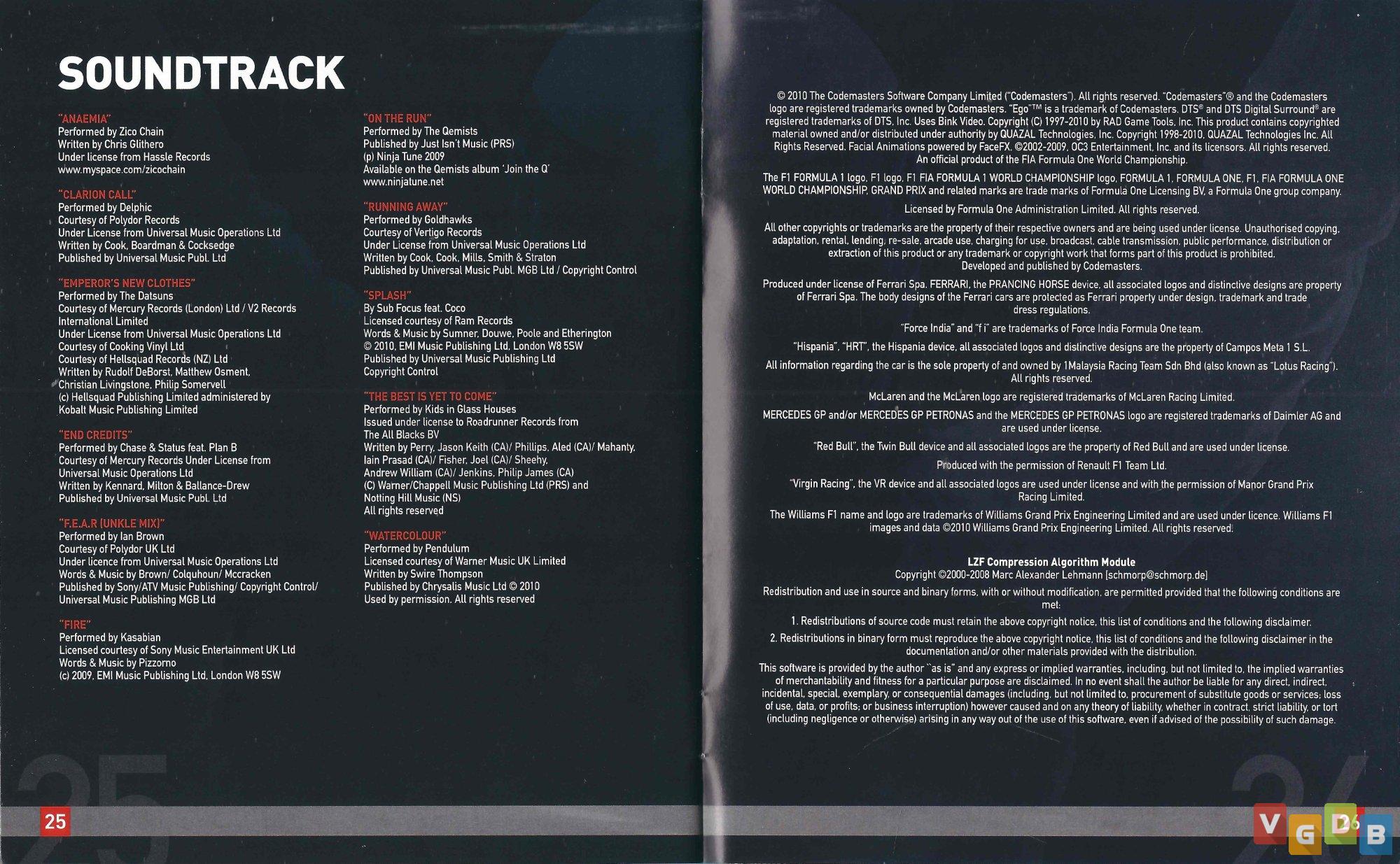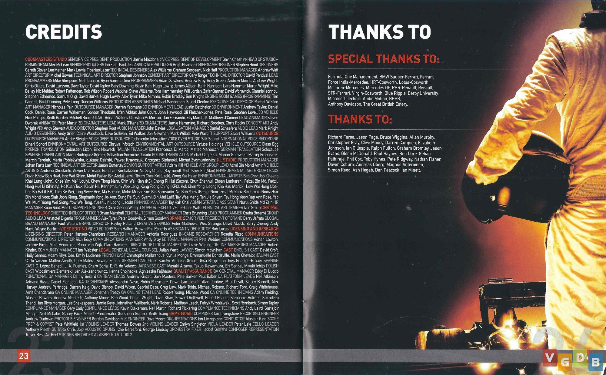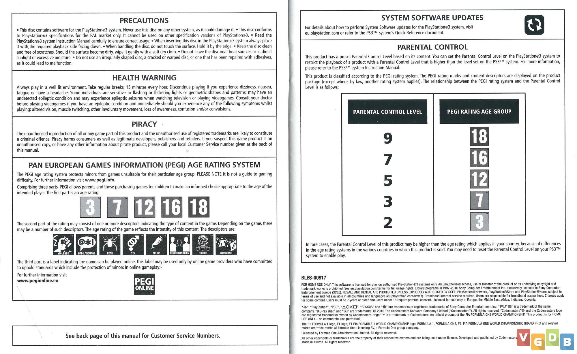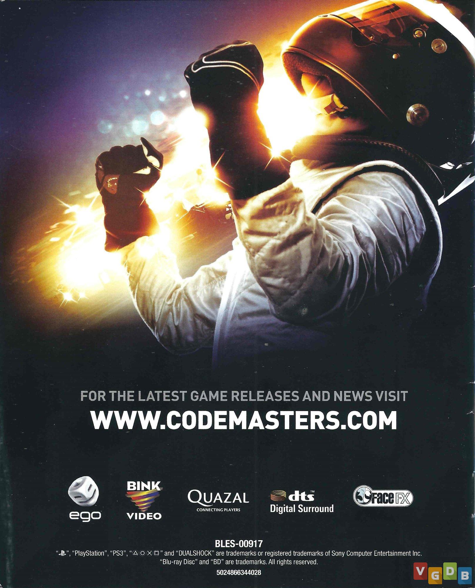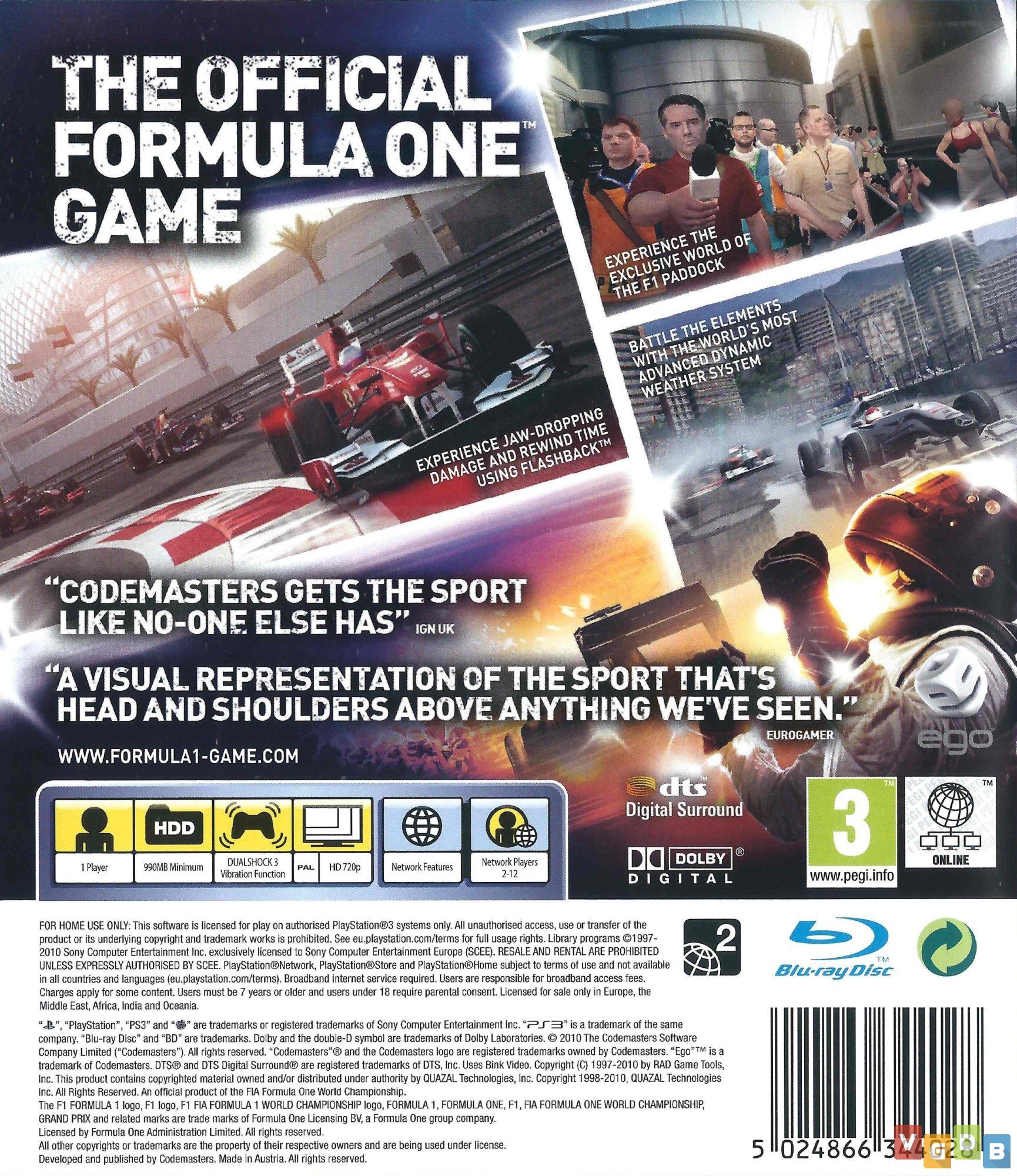 Jogo de corrida de Formula 1 3D, estilo simulação, desenvolvido pela Codemasters Birmingham e publicado pela Codemasters. Além do PlayStation 3, o game também foi lançado para Xbox 360 e PC.