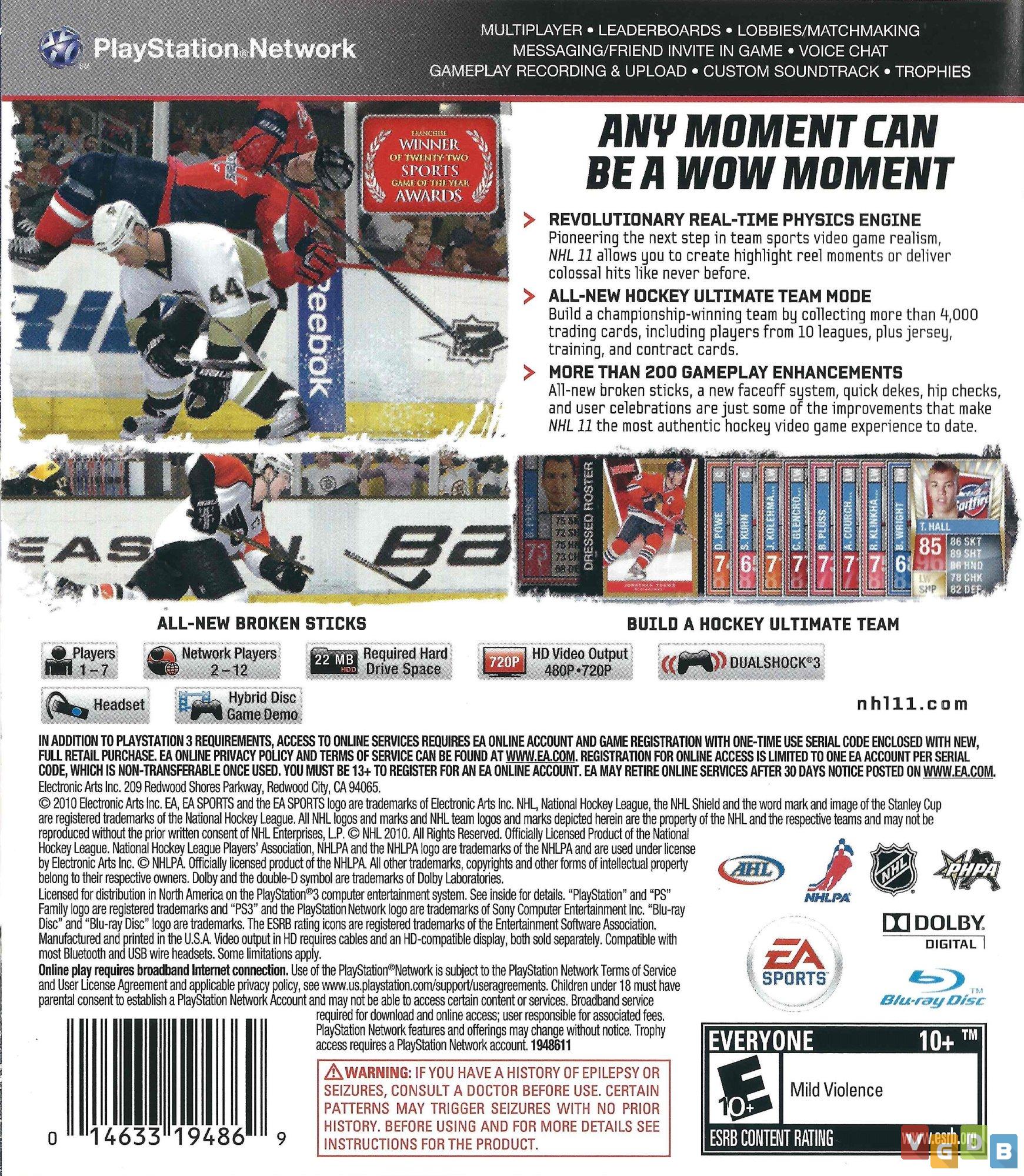 Jogo de esporte 3D (hóquei no gelo), estilo simulação, desenvolvido pela EA Canada e publicado pela Electronic Arts. Além do PlayStation 3, o game também foi lançado para Xbox 360.