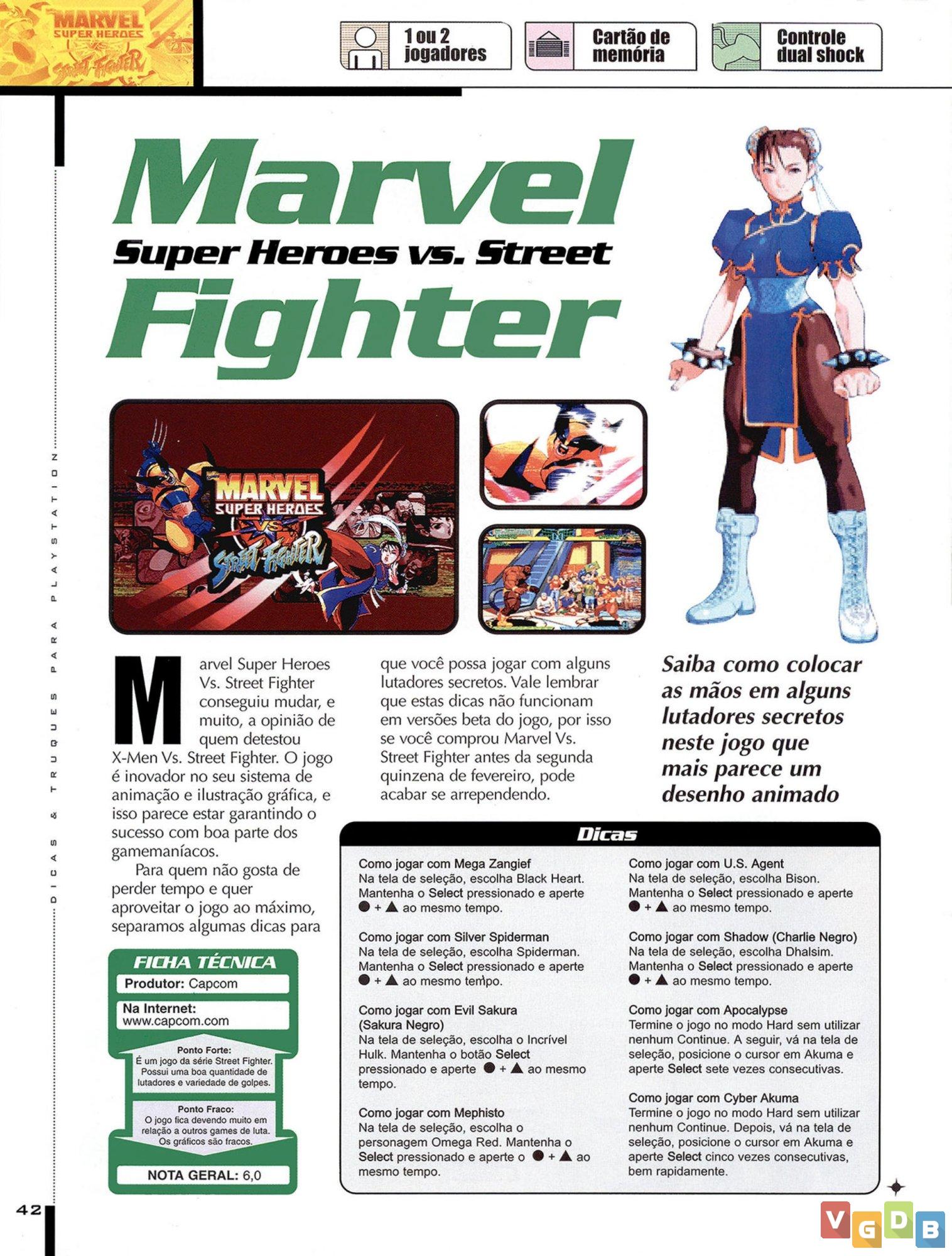 - Franquias: Marvel, Marvel Vs. Capcom, Street Fighter