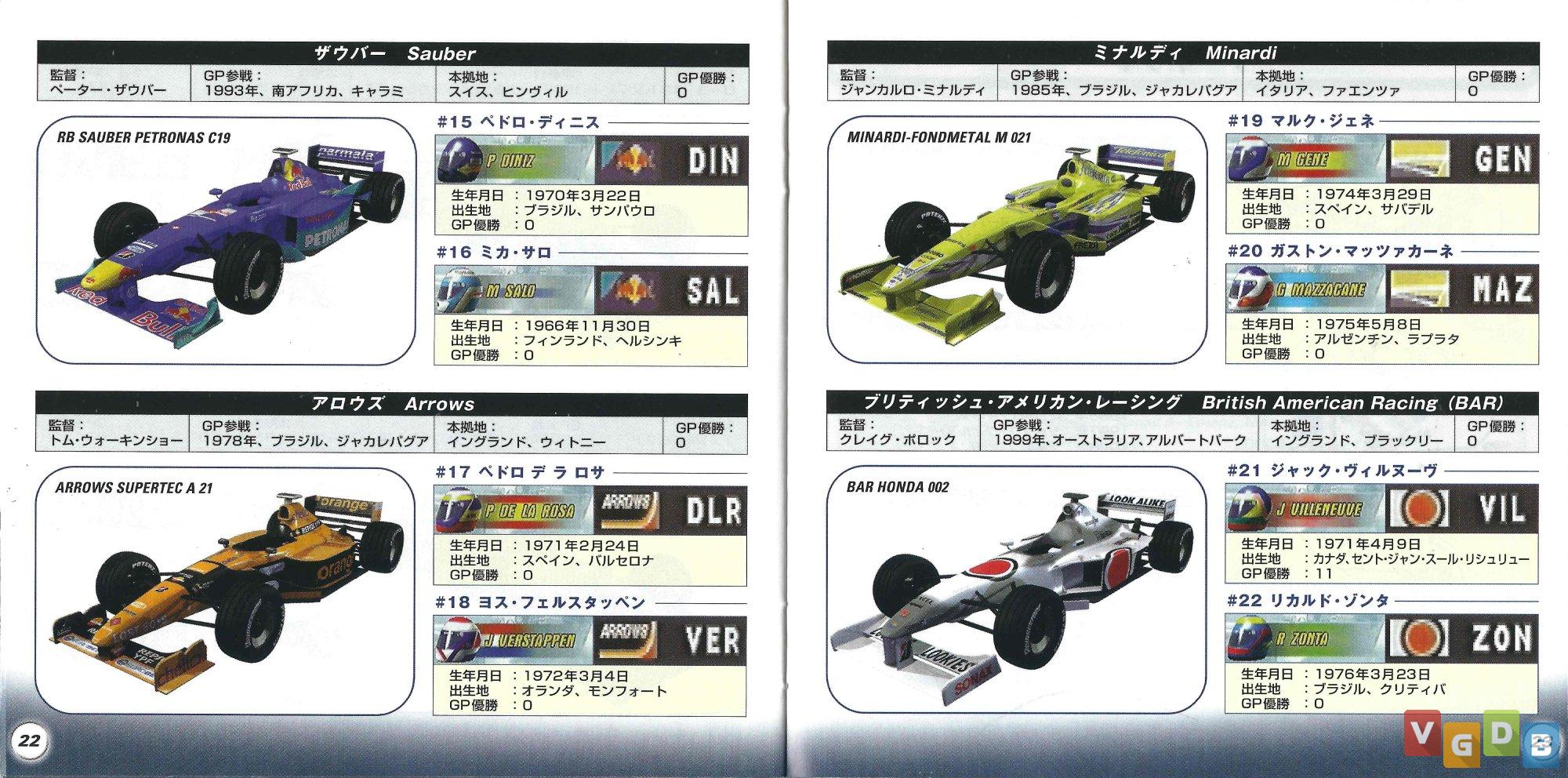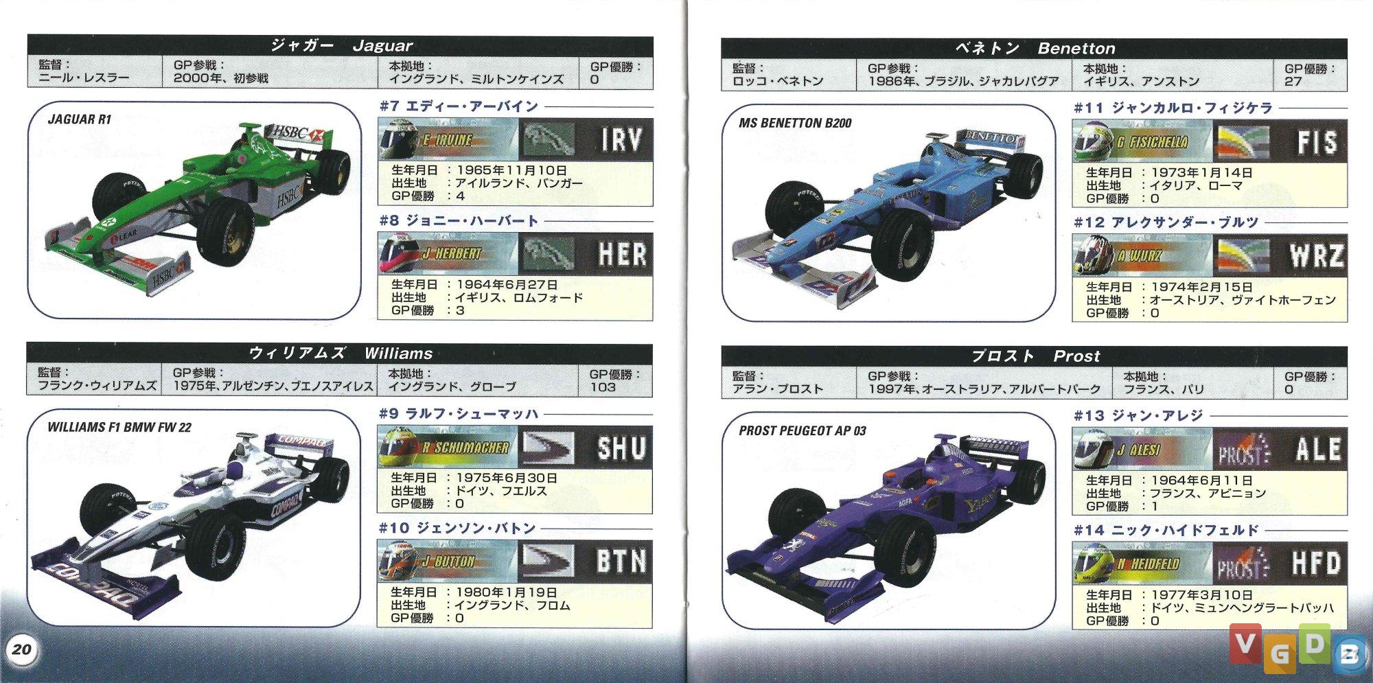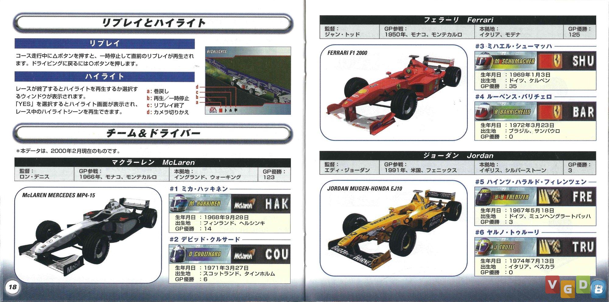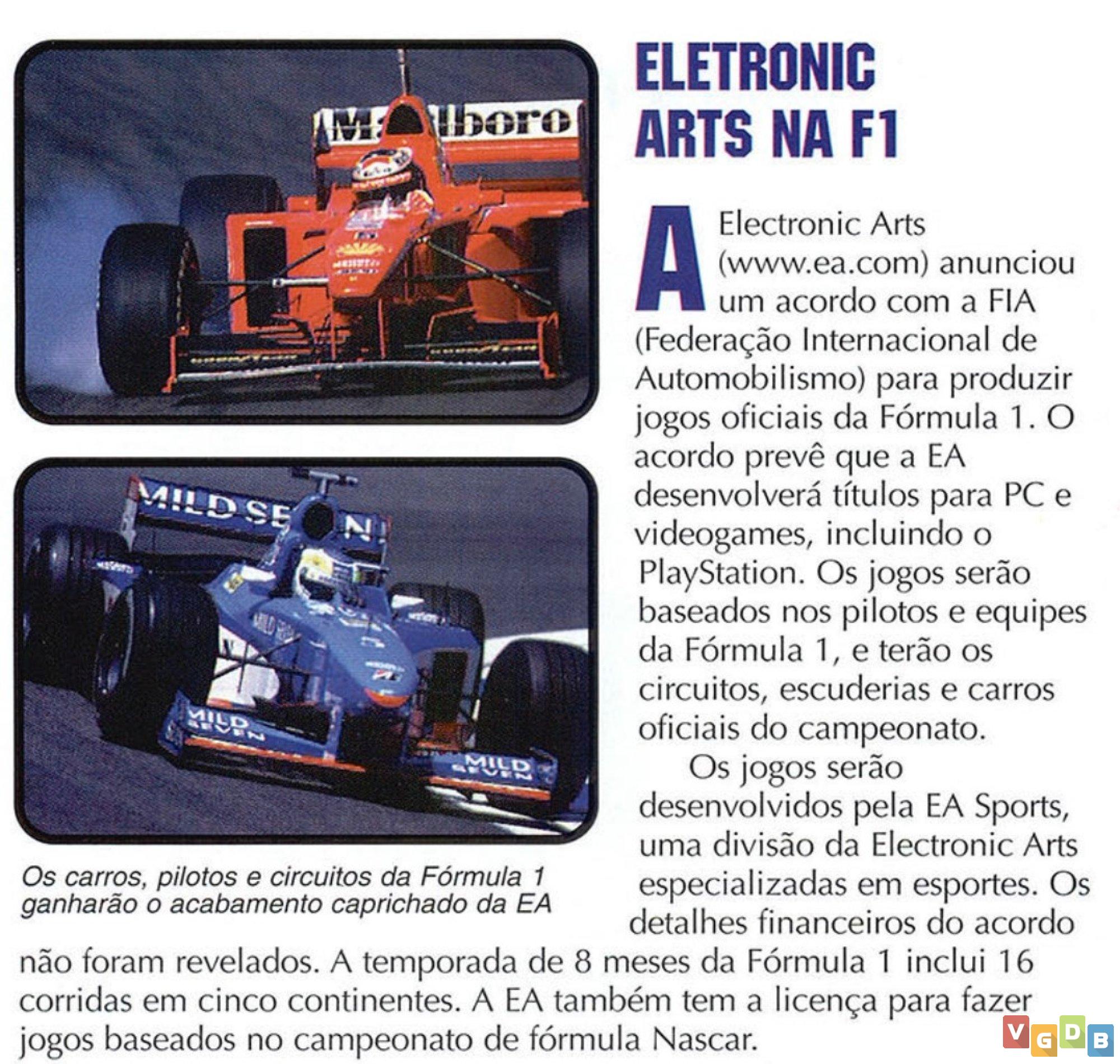 Jogo de corrida de Formula 1 3D, desenvolvido pela Visual Sciences e publicado pela Electronic Arts. Além do PlayStation, o game também foi lançado para PC.