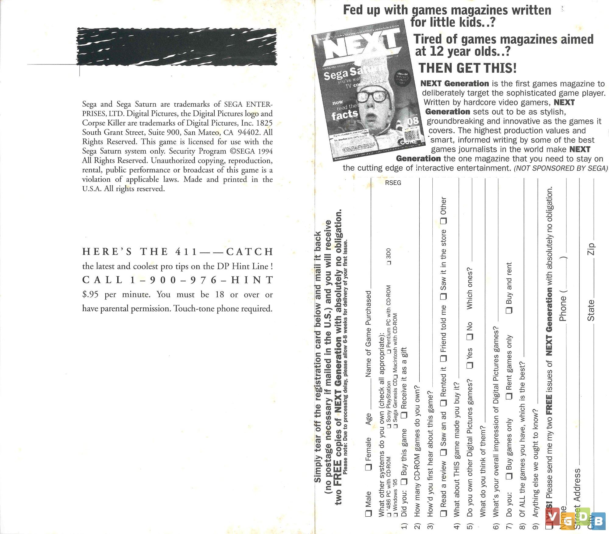 Jogo de tiro 2D em FMV - Full Motion Video com uso de lightgun (opcional), desenvolvido e publicado pela Digital Pictures. Além do Saturn, o game também foi lançado para 3DO, Sega CD, Sega CD 32X e no microcomputador Macintosh, além de uma versão remasterizada para PlayStation 4, Switch e PC.
