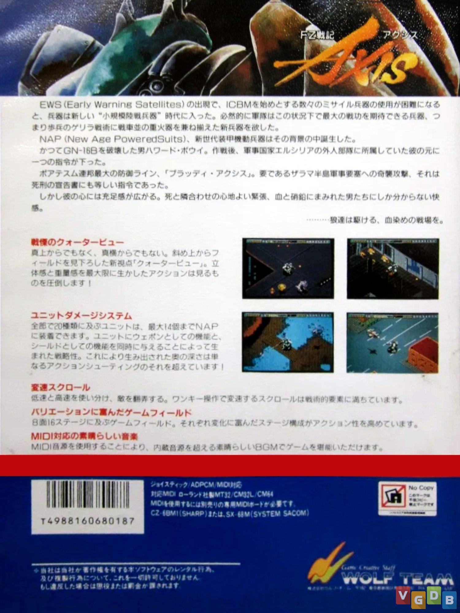 Jogo de ação 2D com visão superior, desenvolvido e publicado pela Wolf Team. Além do X68000, o game também foi lançado para Mega Drive, PlayStation 4, PlayStation 5, Switch, Xbox One, Xbox Series X|S, PC e nas coletâneas Renovation Collection 1 (Evercade) e FZ Senki Axis | Granada Combat Collection Pack (X68000Z).